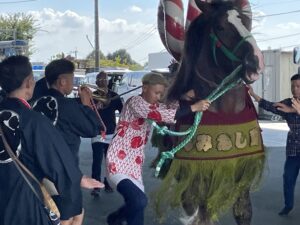 祭りでは、団体ごとに工夫を凝らした飾り馬や華やかな装束、力強い馬追いの姿が披露され、熊本の秋を彩る風物詩として親しまれています。