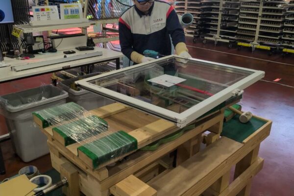 組立作業は電動ドライバーを用いてガラス製品にアルミサッシ・樹脂サッシを取り付ける作業となります。
